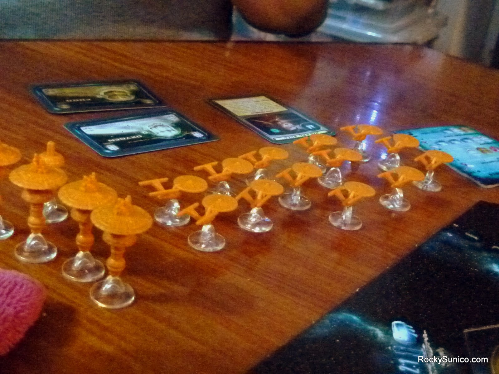 The game opted for plastic figures to represent the various starships and outposts as opposed to the wood figures that have become rather iconic over the years. But this does not diminish the game in any way as the plastic figures are rather fun to play with and it isn't uncommon for players to create little dioramas with their figures when it's not their turn. I just wish the colors made a bit more sense given their command gold is a little more orange and such.