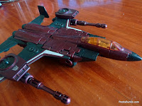 Thrust is probably the gem of the line given he is the figure that truly embraces the G1-style and is in fact a G1 character. his mold is pretty much your classic Seeker mold utilized as far back as Classics Starscream, with some slight changes in his wings. Given Thrust was part of the latter three "conehead" Seekers, they all featured rather unique wings compared to the first three.