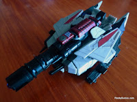 Admittedly I do admit that I enjoyed how his gun integrates efficiently as the tank's cannon. It's shame that you can't swivel the cannon though - he has to turn his entire body in order to acquire a new target. Comes with the territory I suppose. Overall, he's a decent figure and somewhat reminiscent of the Transformers Animated version of Megatron.