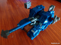 His vehicle mode is another gnarly tank, although more of an artillery vehicle. He also has a number of interesting c-joint guns that can be moved around whether in vehicle mode or in robot mode. This is certainly something that became popular with a number of other Generations figures such as Wheeljack's wrenches or Sergeant Kup's rifle.