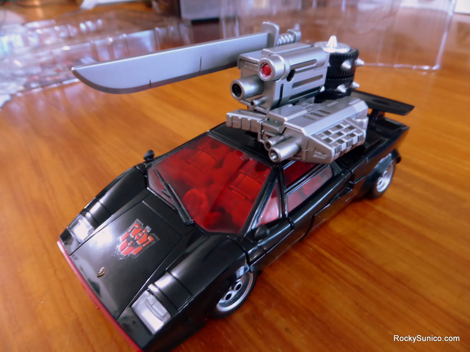 Straight out of the box you can immediately see some of the differences compared to the original Masterpiece Lambor. Beyond the obvious element of the color swaps to black and red, he features a ridiculous number of weapons, meant to capture his Generation 2 comic book armament. And as this was a 90's comic book character, the weapons are pretty larger than life.