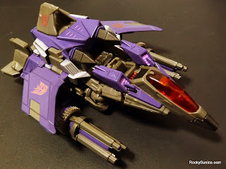 Admittedly I loved this vehicle mold from the time FoC Starscream came out. It's a great copy of how he appeared in the game and is also a wicked looking fighter. Plus he comes with a gazillion sockets for his guns to be inserted whether under his wings, on his arms, at the sides of his legs or even on top of his jet mode (just take out the tail fin). That's a lot of fun versatility in one toy!